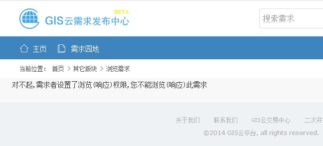 2.发布后,在需求发布中心的“我发布的需求”中查看刚刚发布的需求,提示“对不起,需求者设置了浏览(响应)权限,您不能浏览(响应)此需求”;
